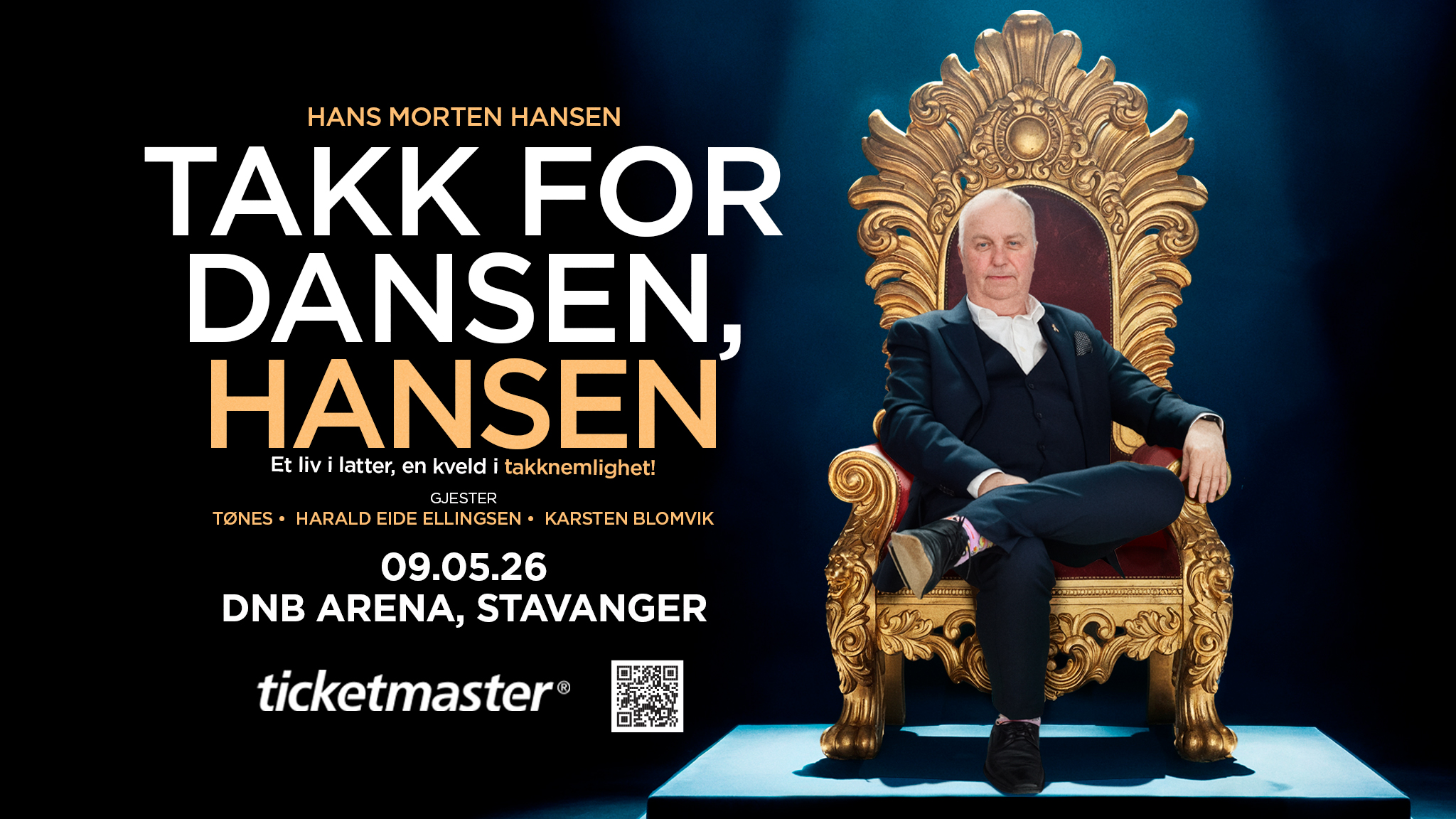 Standup-legenden Hans Morten Hansen inviterer til en historisk kveld i DNB Arena lørdag 9. mai 2026. Da står han på scenen med sitt siste soloshow.